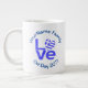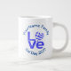 Giant or jumbo coffee mug featuring the blue and white Flag of Greece in a heart shape makes the O in the blue lettered word LOVE. Below it reads OXI DAY 20??. You can customise it to say anything you like. Perhaps, FAMILY REUNION 2030 or EASTER 2031? Above, a spot for your family name or any name you wish for added personalisation. Lovely gift for your favourite Greek.