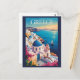 Greece Santorini Illustration Travel Art Vintage Postcard