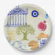 A minimal design of Greek symbols featuring its history, cuisine, and cats.