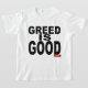 Most famously uttered by Gordon Gecko in the 1987 film Wall Street, "Greed is Good" is a quintessentially 1980s idiom. In the 21st century, with credit crunches, global economic crises and capitalism teetering on the brink of collapse, maybe we think less about greed than we do about survival. Irony and sarcasm are powerful weapons in the war on everyday life's pressures and fears. That's why we created this Greed is Good design, which also bears our exclusive SHOCK brand.