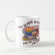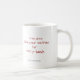 One side of the coffee mug an image painted by Georgia Pistolis with a Greek catch phrase; English translation on the other side of the mug.
