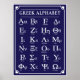 Greek Alphabet in Upper Case and Lower Case. Blue and White Letters from from Alpha to Omega