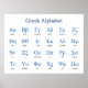 Lower and upper case greek letters with their names. Vector object with custom colours for title, letters and letter names. Custom background colour.
