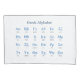 Lower and upper case greek letters with their names. Vector object with custom colours for title, letters and letter names. Custom background colour. Custom text at back side.