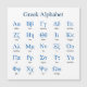 Lower and upper case greek letters with their names. Vector object with custom colours for title, letters and letter names. Custom background colour.
