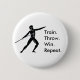 A round button with a graphic of a Greek Athlete preparing to throw a spear with the words "Train. Throw. Win. Repeat." Definitely the universal winning formula for any sportsman.