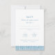 This simple but chic RSVP card features elegant blue type and a tile pattern perfect for a destination wedding - especially a Greek wedding! With tiles in shades of Grecian blue, it evokes feelings of an island but also works well for other tropical destination weddings. This simple RSVP card can be customised with your own "yes" or "no" wording along with menu selection and room for guests to write all the names of those attending. This design coordinates perfectly with the Lea Delaveris Design Tile Frame Greek Blue destination wedding collection.
