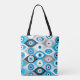 Greek Evil Eye pattern Blues and Greys Tote Bag