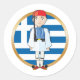 A Greek Evzone standing at attention in front of a Greek flag. Customise this item with a name, comment or whatever you like to make it truly unique!