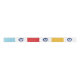 Colorful, bright squares, dark blue, sea blue, red, yellow, a Greek eye on the white patches.
