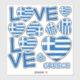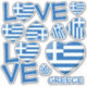 Word "LOVE" with a heart shaped flag of Greece. Custom contour sticker set.