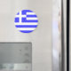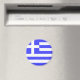 The flag of Greece shows on a round magnet here in nine blue and white alternating stripes. To represent Eastern Orthodox Christianity, there is a cross in the upper right side (hoist side). A perfect way to share your love of all things Greek on Oxi Day or anytime. The image here takes up the entire design space, using a bit of artistic license to make the flag look its best on each item. The flag was officially adopted as a symbol of Greece on January 13, 1822 at the First National Assembly at Epidaurus. Traditional legends say the stripes represent the number of syllables (nine) in the Greek words for FREEDOM OR DEATH. Others say they represent the letters in the Greek word for FREEDOM. Others suggest that each stripe represents one of the nine Muses of mythology. The blue and white colours are suggested to represent the colours of the Greek sea and sky. Either way, it makes for a beautiful flag that will always look nice anywhere you take it.