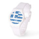 Greek flag wrist watches for men and women. Sporty watches with flag of Greece. Personalizable with custom monogram.