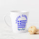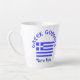 Personalized design shows the Flag of Greece and the words GREEK GODDESS above, in blue letters on two sides of a small latte mug. Add a name underneath to personalize your mug or create a customized gift. Fun for Greek-Americans, Greek Canadians, or anyone with Greek heritage, ancestry or culture. YIASSOU! The flag is blue and white stripes with a blue cross on a white background in the upper left area.