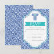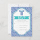 Greek key and aqua, blue column wedding RSVP Card