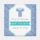 Blue Greek key and column wedding Save the Date magnet. A stylish Greek key or Greek fret or meander pattern design in blue, aqua and white, a blue and turquoise Greek column and your grey text in a frame with an aqua banner. Modern yet with a vintage look in a sense. This elegant with classic elements from ancient Greece design is a completely customisable template and is part of a wedding set perfect for a destination summer Geek or Grecian wedding.