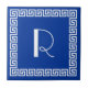 Classic Greek key design. Replace placeholder letter with your initials. Blue.
