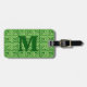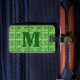 Classic Greek Key pattern in deep emerald green on a light lime green background, with monogram and customisable contact information