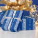 Greek key meander pattern blue gift wrapping paper. Add your own personalised name and greetings message. Surprise your friends and family. Suitable for men women and kids. Elegant geometric fret art work design. Make your own gift wrap for wedding, Christmas Holidays, baby shower, graduation, congratulatory occasions, Birthday, anniversary, new home, wedding, family reunions, pregnancy, new job, restaurant, company and more. Available in matte and glossy rolls. Fun DIY packaging accessories and party supplies.