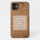 iPhone / iPad case with Greek key (Meander) pattern elegant white design with key border to match on brown ancient Greece style background. This design of the famous and popular Greek pattern of the continuous line can be edited to change its colour if you like.