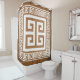 Shower curtain with Greek key (Meander) pattern elegant white design with key border to match on brown ancient Greece style background. This design of the famous and popular Greek pattern of the continues line can be edited to change its colour if you like.
