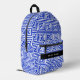 Greek Meander Key Blue, Your Name, Personalise Printed Backpack