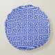 Greek Meander Key Square H Pattern Blue Round Cushion