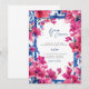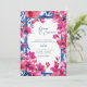 This wedding invitation features a painting of the mediterranean greek with pink flowers. bougainvillea wedding invitation. Easily edit *most* wording to meet your event needs. You can change the background colour and add your own photo to the backside.