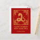 This elegant New Year pattern design features a gold Chinese snake with a Greek ornament frame on a red background.