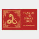 This elegant New Year pattern design features a gold Chinese snake with a Greek ornament frame on a red background.
