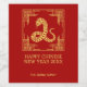 This elegant New Year pattern design features a gold Chinese snake with a Greek ornament frame on a red background.
