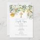 A beautiful Baptism design showcasing yellow and white watercolor rose flowers, gold Cross and a Greek Orthodox icon of the Virgin Mary on the reverse of the card. A religious design ideal for a baby boy's Baptism Christening. Matching stationery and decor can be viewed in this design's collection.
