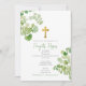 A beautiful Baptism design showcasing watercolor greenery, gold Cross and a Greek Orthodox icon of the Virgin Mary on the reverse of the card. A religious design ideal for a baby boy's or baby girl's Baptism Christening. Matching stationery and décor can be viewed in this design's collection.