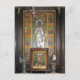 A postcard with a beautiful photo of a religious silver icon and painting, taken in the Greek Orthodox Church of the Metamorphosis, Ermopouli, Greece.