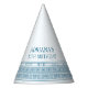 Greek or Roman Toga party hat featuring a minimalist Greek meander pattern in blue. Customisable product for a memorable celebration. Perfect for your Ancient Greece or Ancient Rome-themed weddings, engagements, graduation parties, anniversaries, save the dates, bachelorette and birthday parties.