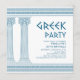 Greek Party birthday invitation featuring minimalist temple pillars and Greek meander pattern in blue. Customisable product for a memorable celebration. Perfect for your Ancient Greece or Ancient Rome-themed weddings, engagements, graduation parties, anniversaries, save the dates, bachelorette and birthday parties.