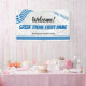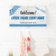 Greece or any Greek theme event welcome banner with the flag of Greece, Welcome in Greek, and an antique map of Greece faded out in the background. Edit all text for your Greek festival, family reunion, school or classroom event.