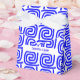 A Traditional Greek decorative meander repeat key fret pattern in blue and white so stylish and easy to customise with personal names, monograms or text of your choice