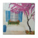 A painting in acrylic of somewhere in Greece. A whitewashed house with a blue window. Geraniums and wild flowers. And a Bougainvillea growing up the wall.this would make a great gift. For someone who loves Greece and the islands.