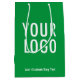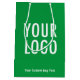 Sometimes you only need a few custom printed gift bags, so here is a great way to get just what you need in the colour and design you want. Personalise this gift bag online with your own company logo, custom text, and colour. Available in matte or glossy finish in green and other colours. The medium gift bag is 7 inch x 4.5 inch x 10 inch. No minimum order quantity and no setup fee.