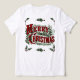 Holiday shirt with a vintage image of the red and green 1876 Merry Christmas greeting.