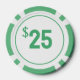 Green game night poker chips with a watercolor design and playing cards on one side and easy to read font for the money denomination on both sides - green is a standard colour for $25 chips, but easily change the denomination if you wish.