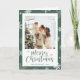 Modern green photo Christmas folded card featuring snowflakes. Easily personalise this cute photo holiday card with your photos and custom message.
