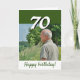 Green 70th Birthday Photo Card. 70th birthday custom greeting card for someone celebrating 70th birthday. Insert your photo into the template. You can also change the age number.