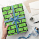 Green 8-Bit Video Game Look Bricks Pattern Wrapping Paper