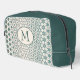 Green Abstract Geometric Pattern Monogrammed Toiletry Bag. This is a perfect gift for Birthdays, Christmas, Bridesmaids, etc., and it is ready to be personalised with an initial monogram.