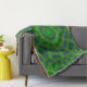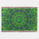 A quality printed throw has its advantages. This is a much finer weave throw than its loopier cousins, and though lighter, it is worth the investment for custom room accessorizing. The back is much prettier than the typical brown, and the fringe on the long sides very vivid, the selvage nicely done. Before photographing, I washed the throw in cold water, delicate, with a thicker woven throw the same size. On tumble dry low, this throw was dry in half the time as the other. This is a very practical quality if you use throws for furniture covers or to wrap up in frequently. The sleekness of the fabric makes it a great layer for accenting or protecting without the feeling of sitting on too much stuff. Perfect for napping or when you feel a light chill coming on. The color printing is beautiful and on this fabric, matched the design and color of my Photoshop image. This is an advantage for blending room fabrics and colors. The fringe on the short sides prints the colors from the design image and therefore varies from the side fringe. I streaked a white fractal line through the plaid pattern to give the illusion of weaving. This printed as crisp as an illusory thread, and put some white in the short side fringe, showing another advantage of print vs loomed- for artistic purposes, line lines, detail, and color integrity can be planned and preserved. My loomed throws have color limitations and more of a needlepoint texture. Print throws reproduce an exact image. The throw felt a little stiff straight out of the package, but this went away in the first delicate wash. Of course I searched the wash water for ink or bleeding and there was none.