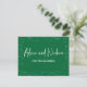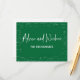Modern green graduation advice and wishes for the graduate card with a beautiful calligraphy script font and a background of mathematical formulas and equations. Let the guests write and sign their words of wisdom at the back of the card and make the graduation party memorable forever. Illustrated and designed by Patricia Alvarez.