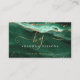 Green Agate Script Monogram Faux Gold Glitter Business Card