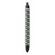 Simple green alien head with big black eyes and a small black mouth on a dark grey background.